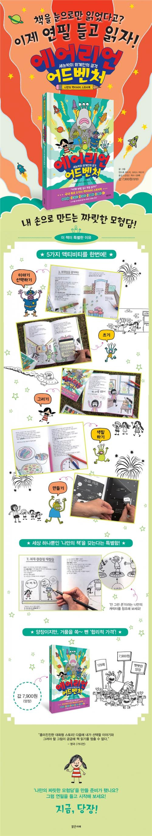 국내 최초로 5가지 액티비티를 동시에 즐길 수 있는 이야기책이 나왔어요! 이 책이 특별한 이유는 5가지 액티비티와 함께 벌어지는 흥미진진한 이야기를 쫓아가면 세상에 딱 하나뿐인 ‘나만의 책’을 만들 수 있기 때문이에요. 독자가 직접 다음에 전개될 이야기를 선택하고, 등장인물과 배경 등을 자유롭게 그리고, 알록달록 색칠하고, 쓰고, 만드는 5가지 활동을 통해 ‘나만의 모험담’을 창조하는 거지요.